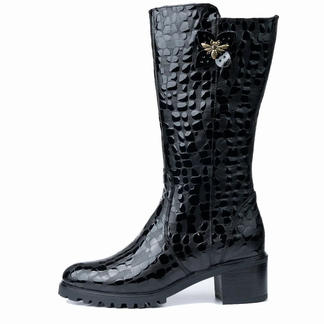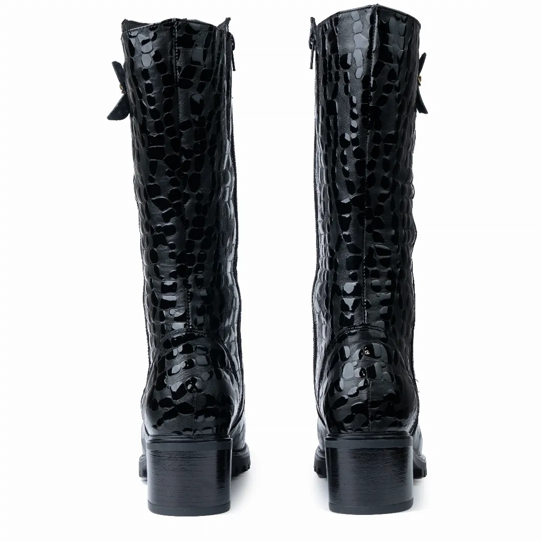 Cizme dama gamba groasa, Glemis, piele naturala Model: GAMBA, Culoare: Negru Box Lac, Marime: 38 (25.2 cm)
