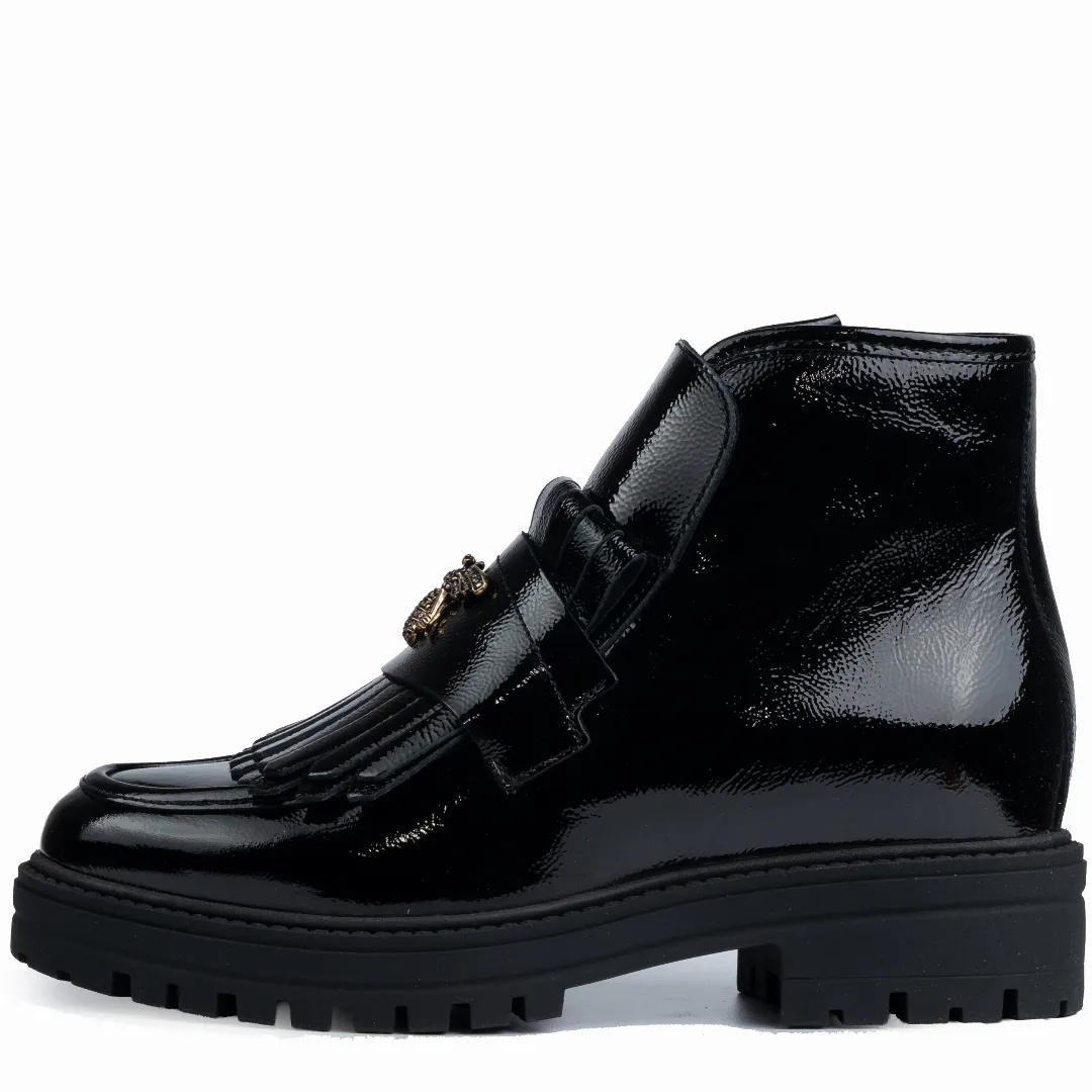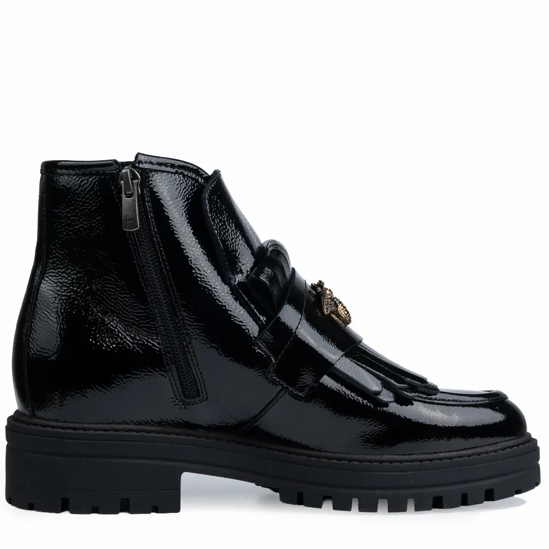 Ghete dama calapod normal, Glemis, piele naturala Model: Stupina, Culoare: Negru Lac, Marime: 38 (25 cm)
