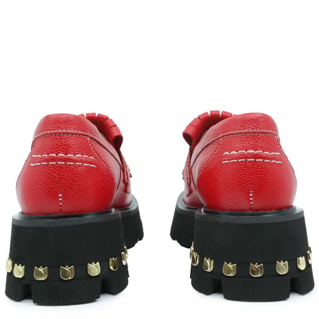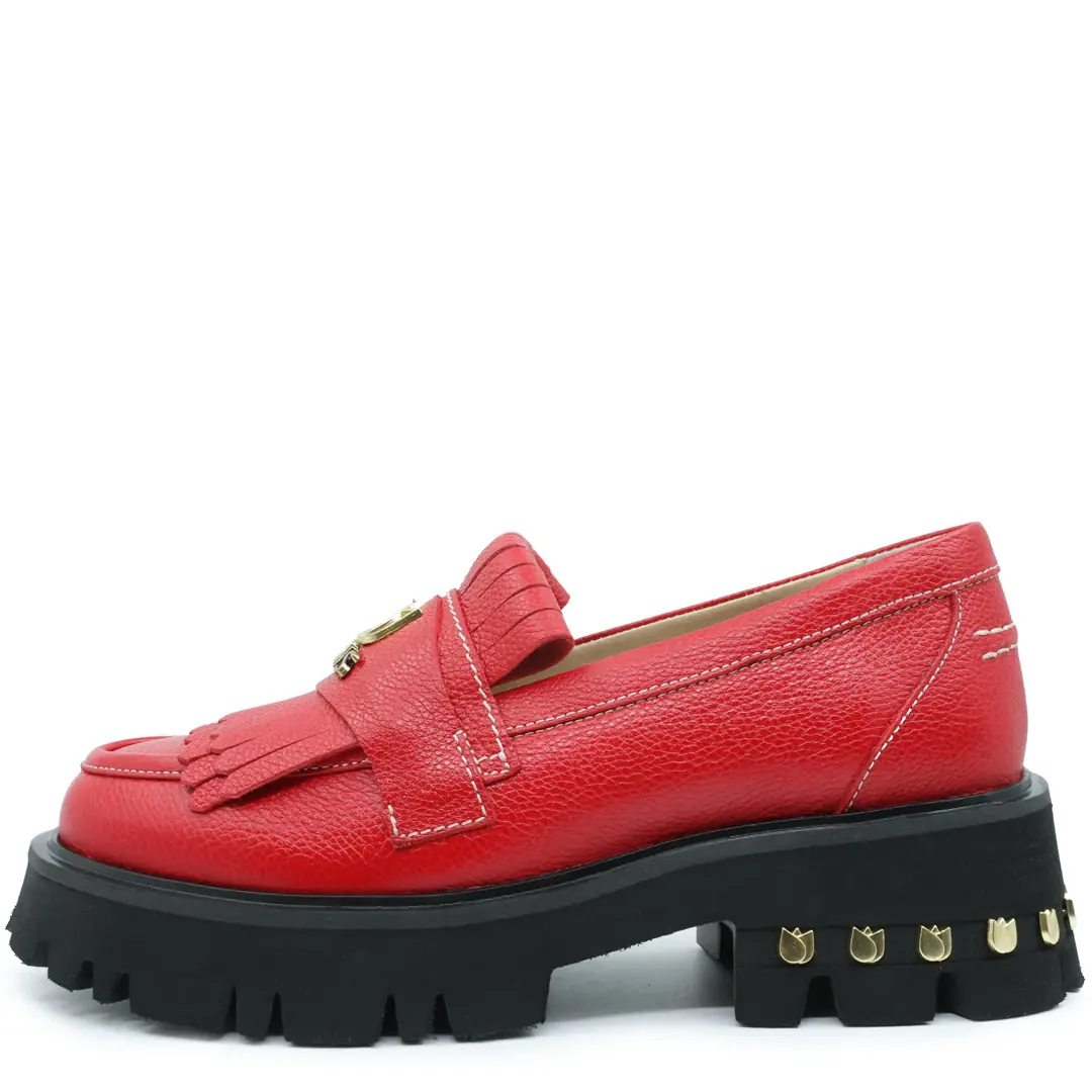 Mocasini dama, Glemis, piele naturala Cod: f-4.60, Culoare: Rosu Bizon, Talpa: Negru, Numar: 40