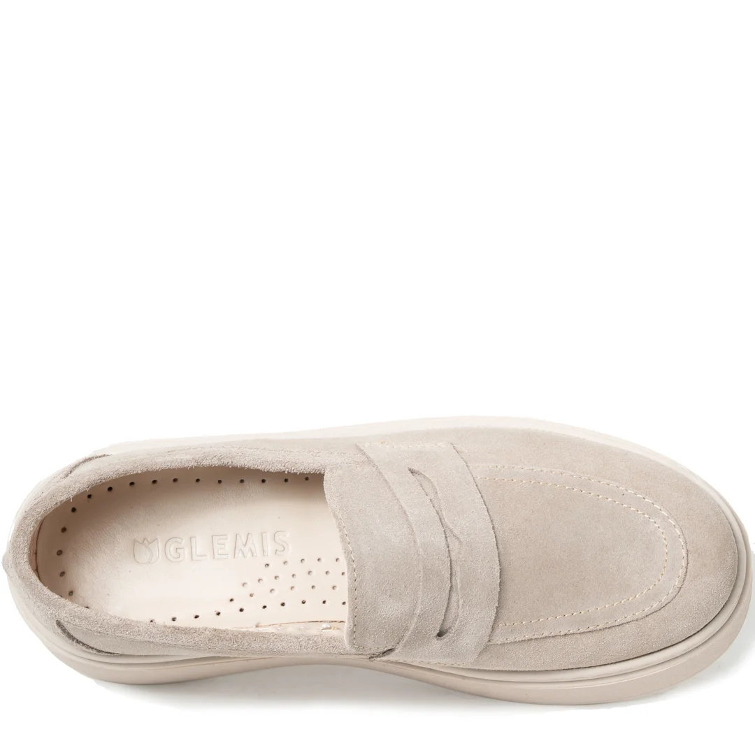 Pantofi casual dama, Glemis, piele naturala intoarsa Model: IB-2630, Culoare: Bej, Marime: 38 (25 cm)